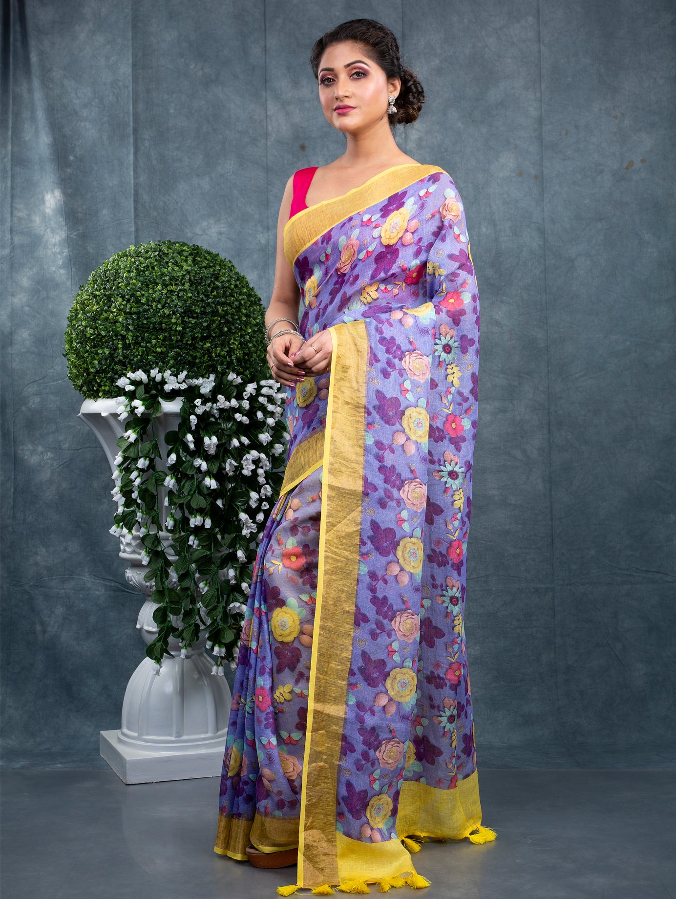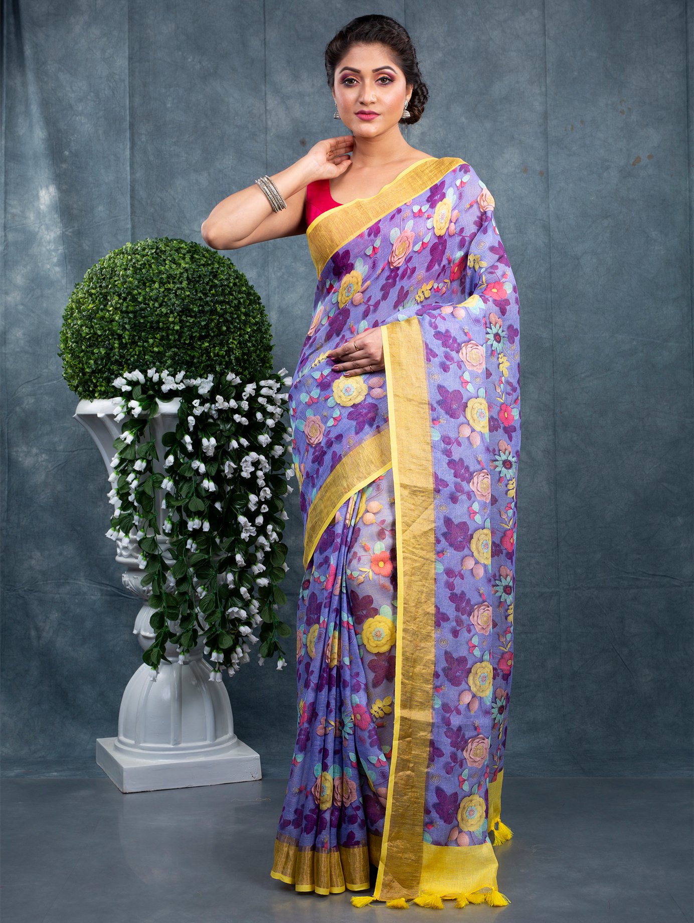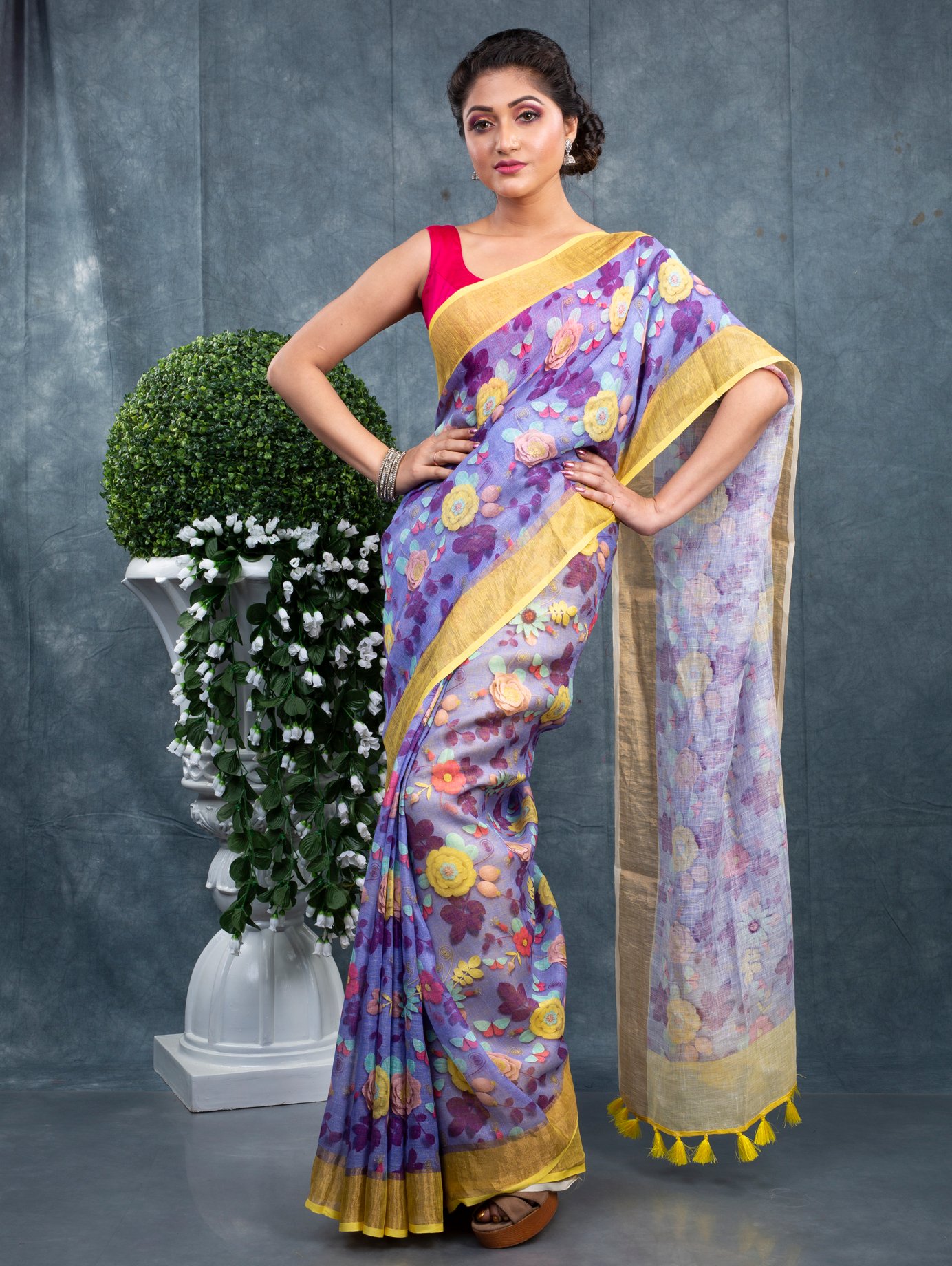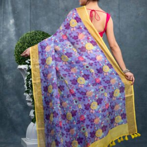 Fabric: A linen (or linen-cotton / linen blend) saree uses linen — a natural fibre obtained from the flax plant — valued for its breathability, durability and comfortable drape. Compared with heavier fabrics such as pure silk or thick cotton, linen sarees are lighter, cooler and ideal for Indian climates.