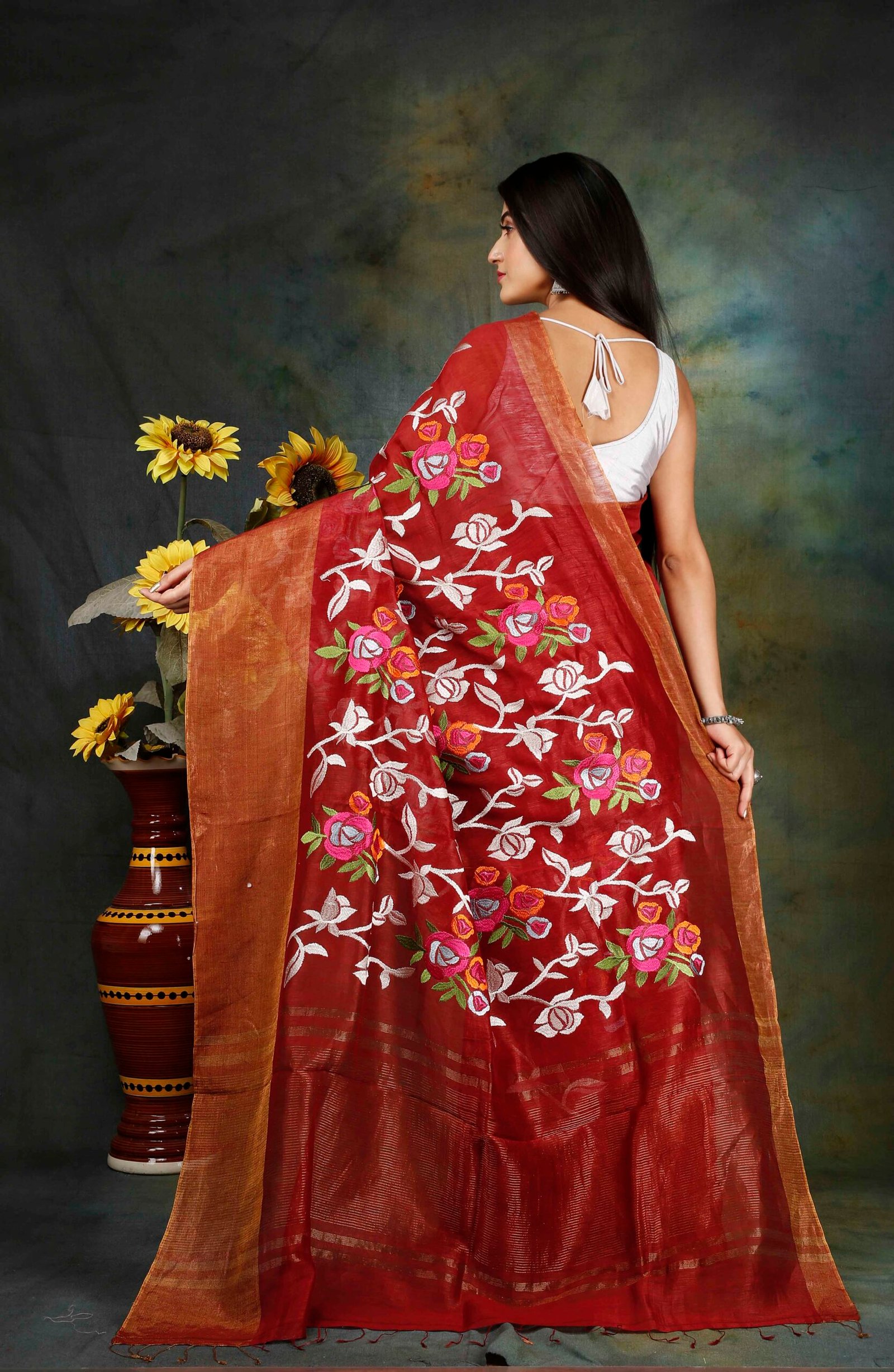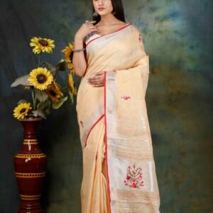 These sarees are lightweight, breathable, and comfortable to wear in all seasons. The fabric has a beautiful matte-gold finish and unique irregular weave, which adds to its charm. Tussar silk drapes gracefully and holds pleats well, making it perfect for both casual and festive occasions.